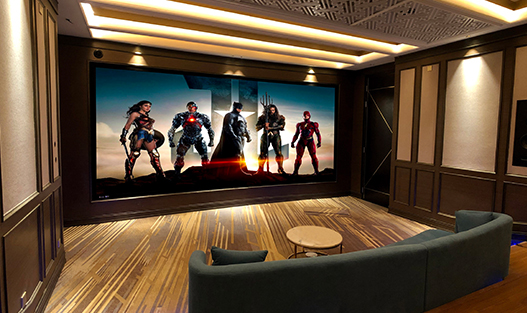 CAV佛山體驗中心定制影院項目配備7.4.4杜比全景聲影院系統(tǒng)和智能控制系統(tǒng),將影音設(shè)備、空調(diào)新風、燈光等設(shè)備實現(xiàn)高度集成化控制。