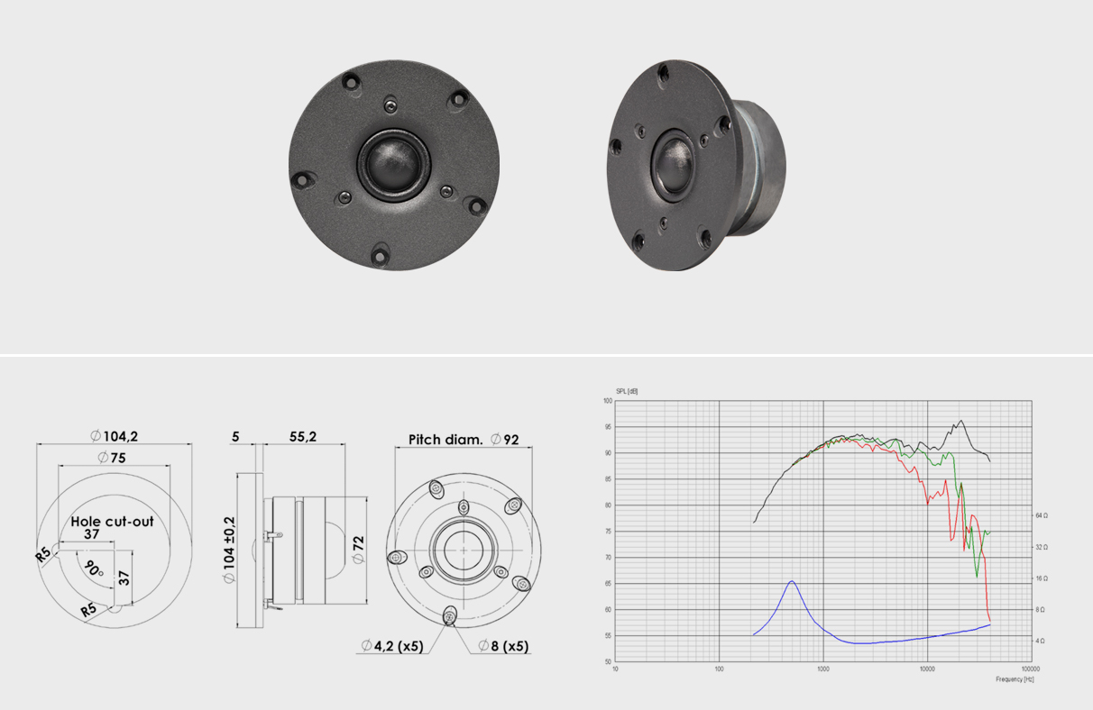 高音采用一個一英寸的丹麥紳士寶Discovery發(fā)現(xiàn)系列進口揚聲器單元,此單元為紳士寶為CAV量身改良定制并經(jīng)過工程師的優(yōu)秀調(diào)校,擁有雙鐵氧體磁鐵球頂絲膜技術(shù),高靈敏、低失真,因此它的高頻聲音極為清晰透徹,高音表現(xiàn)平常非常平順、如絲綢般柔滑。